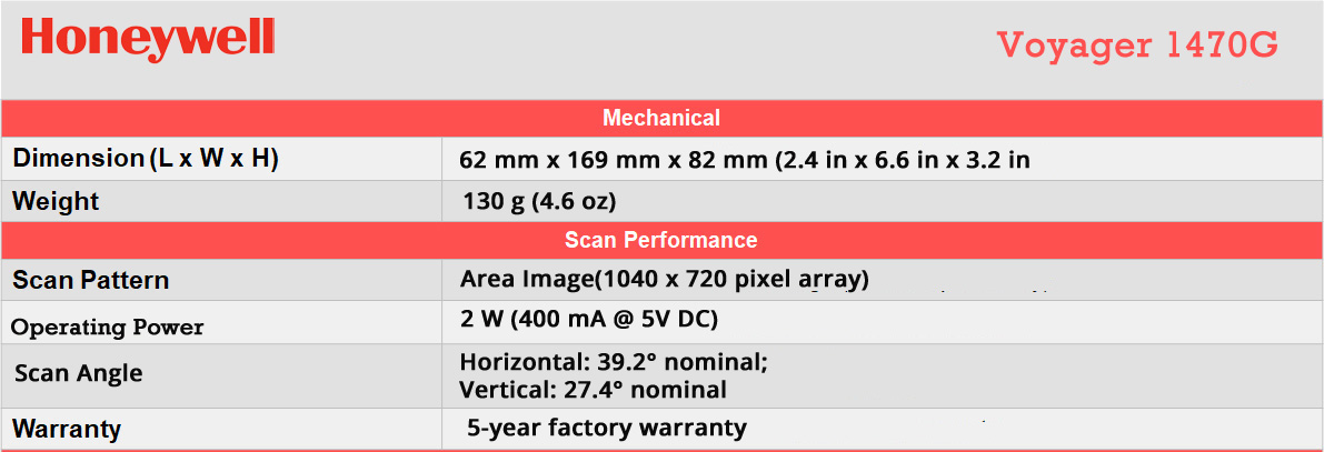 Honeywell Voyager 1470g Specification